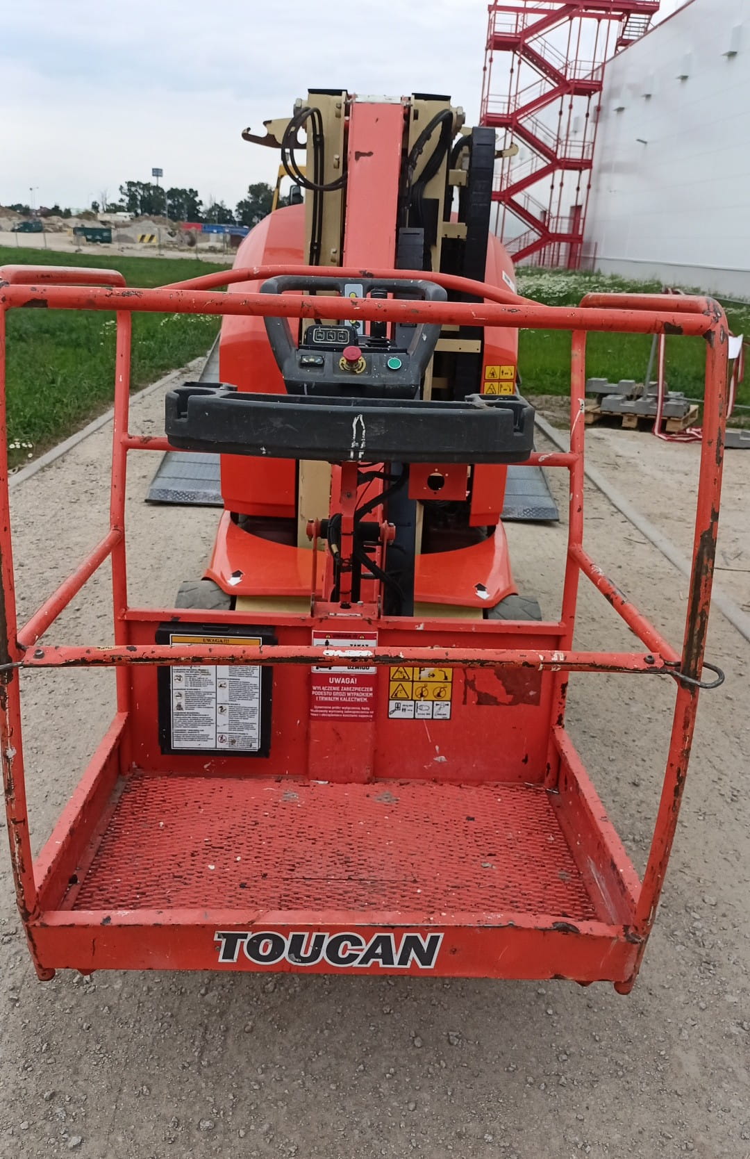 Na sprzedaż używany podnośnik masztowy JLG Toucan 12E Plus z 2015 roku. Maksymalna wysokość robocza 12,65 m, a udźwig to 200 kg.