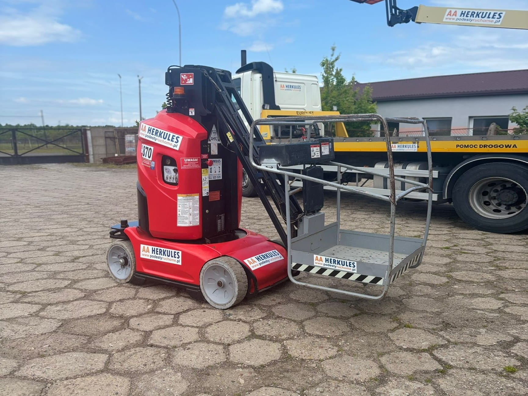Podnośnik może podnosić do 2 osób, a sama waga maszyny to około 2650 kg. Model posiada elektryczne zasilanie z akumulatorów.