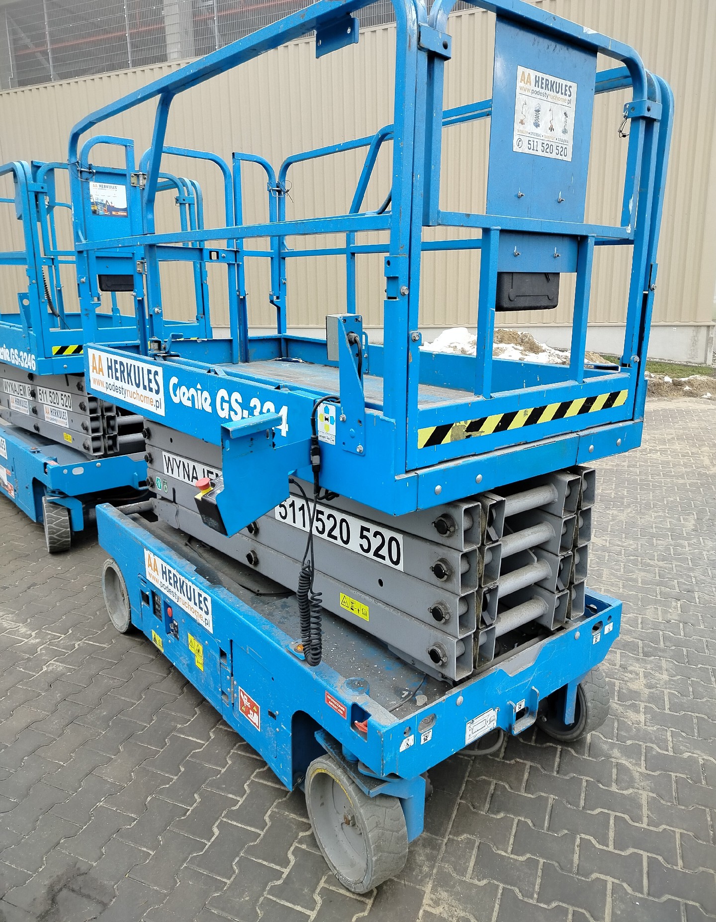 Na sprzedaż używane podnośniki o nożycowej konstrukcji Genie GS 3246 z 2017 roku. Maksymalna wysokość robocza 11,78 m, przy udźwigu do 318 kg.