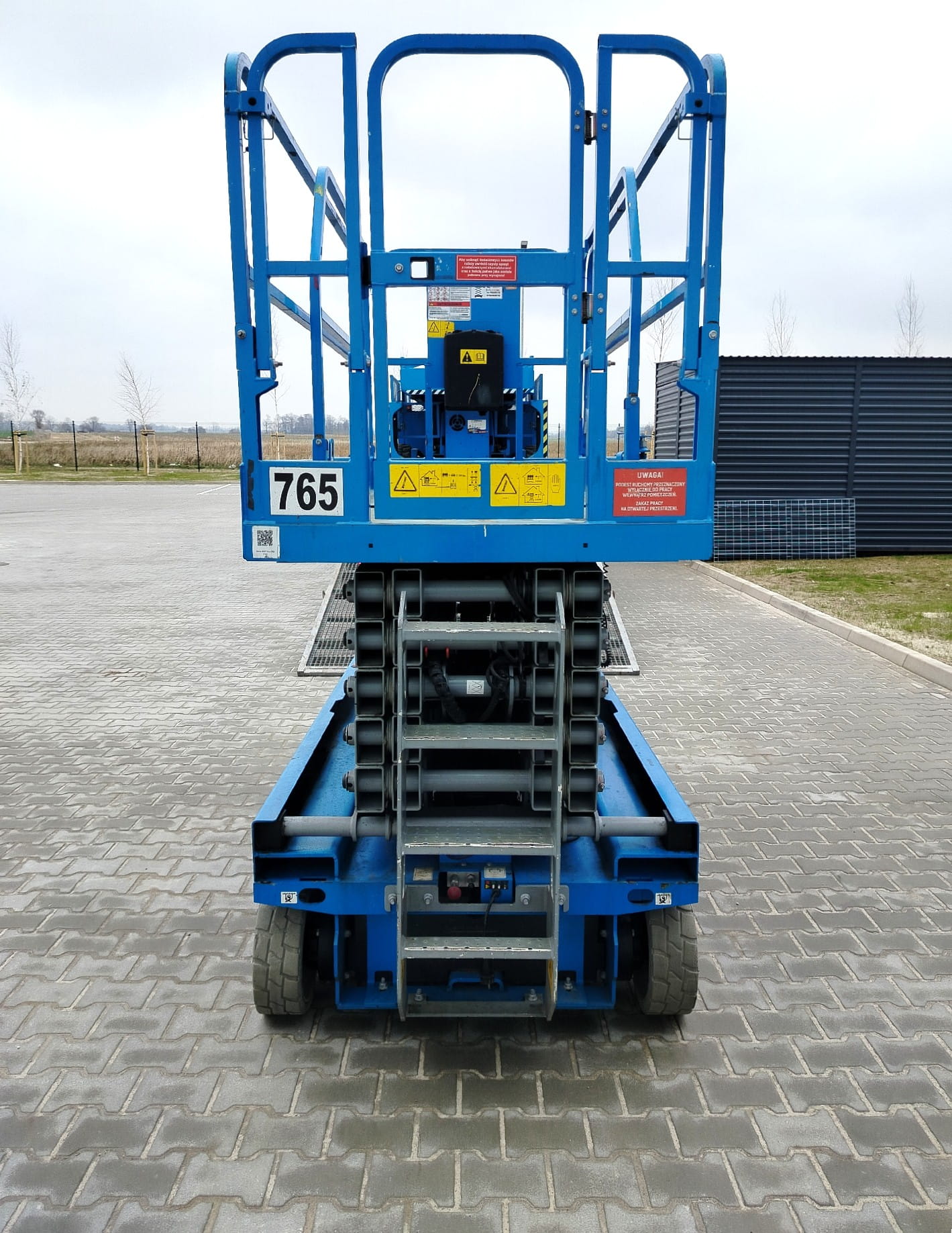 Na platformie może pracować jednocześnie do 3 osób, a sama waga maszyny to około 3320 kg. Model posiada elektryczne zasilanie z akumulatorów i ładowanie z sieci.