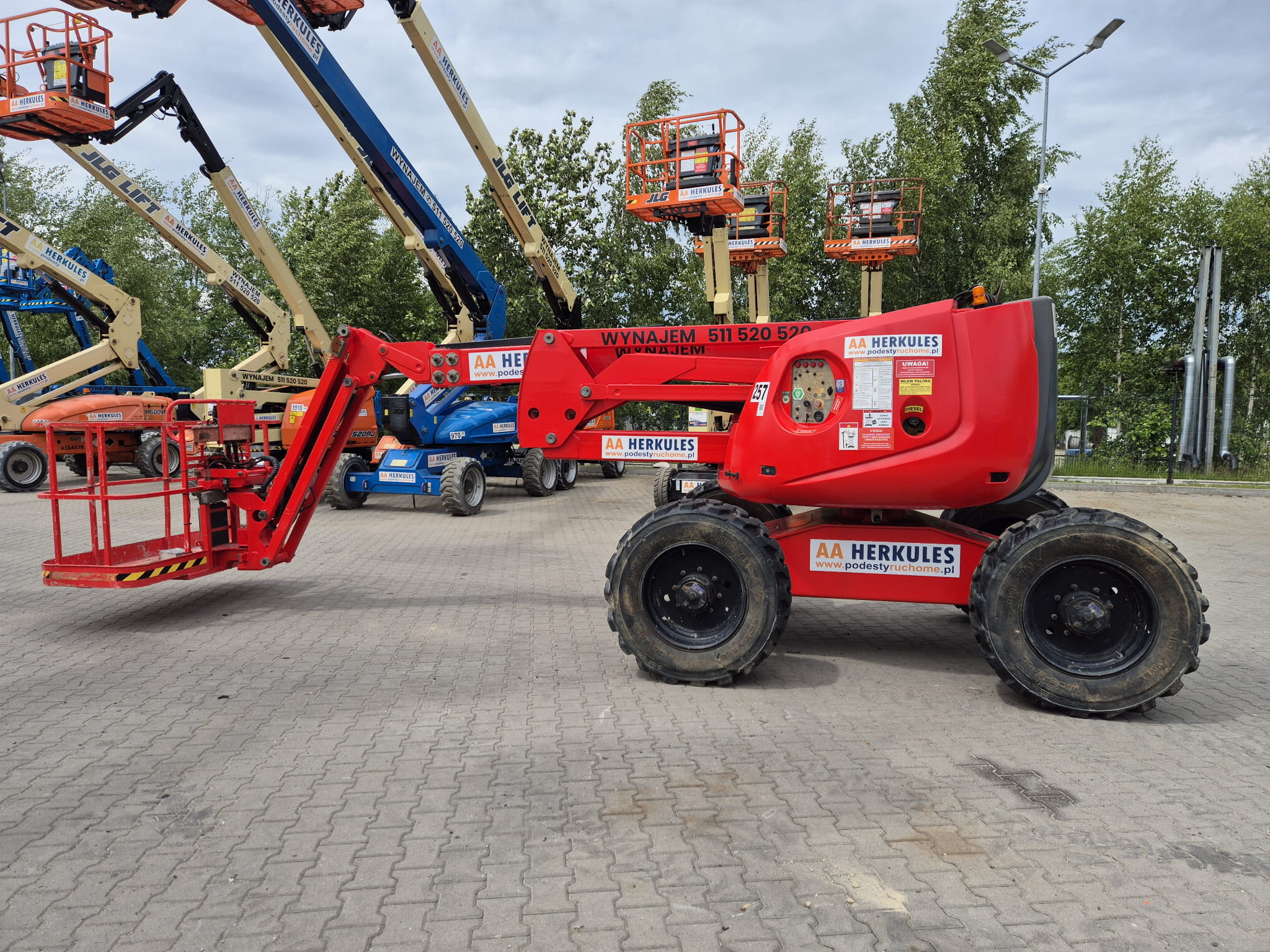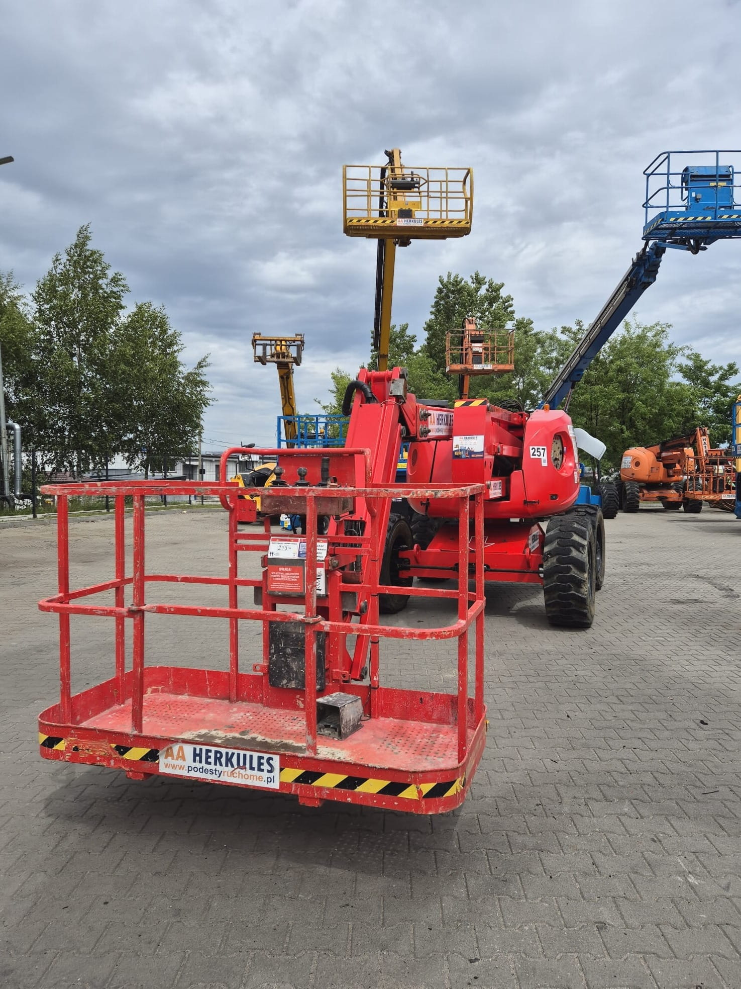 Na sprzedaż używany teleskopowy podnośnik Haulotte HA16 PX NT z 2006 roku. Maksymalna wysokość robocza 16,00 m, zasięg boczny 9,10 m, a dopuszczalny udźwig kosza to 230 kg. W koszu zwyżki może pracować do 2 osób, a waga modelu to około 7240 kg. Model zasilany jest spalinowym silnikiem Diesel.